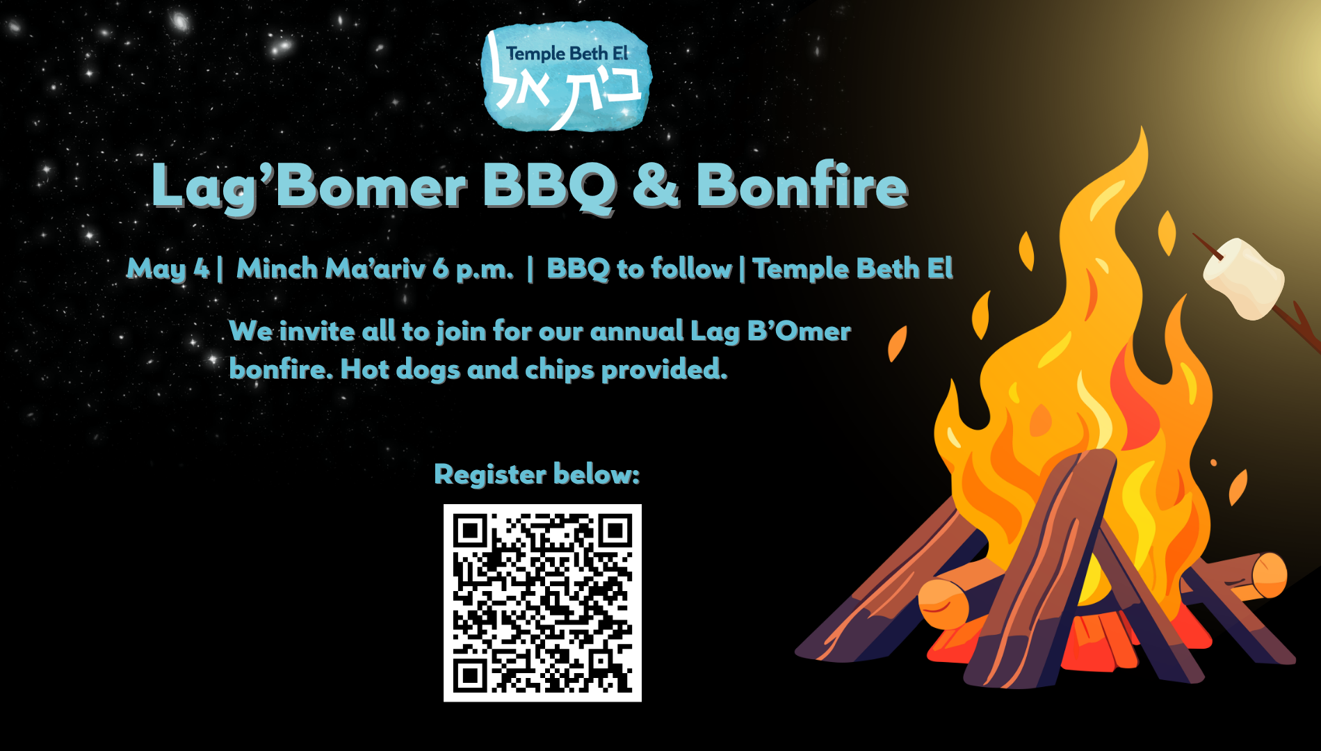 You’re invited to join for our annual Lag B’Omer bonfire. Hot dogs and chips provided.