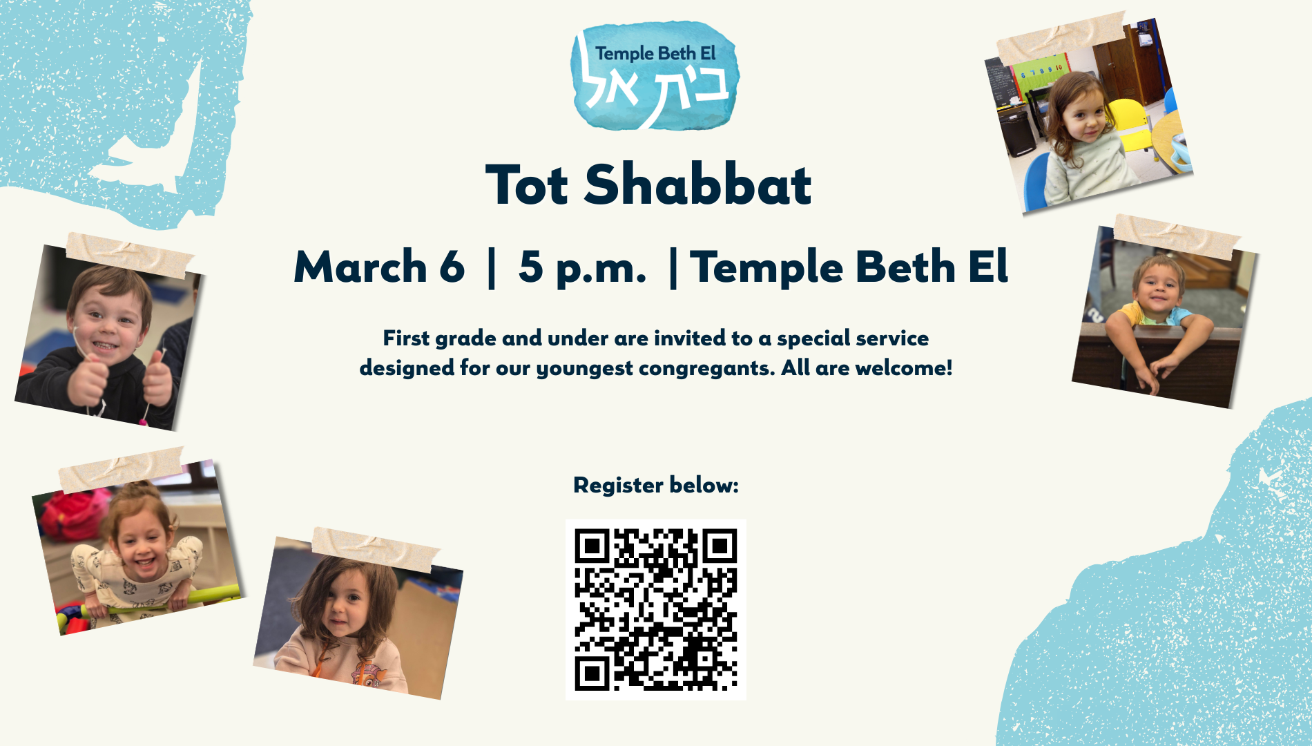 March 6, 2026 @ 5:00 pm – Bring your little ones to a special shabbat service at TBE! Register here.