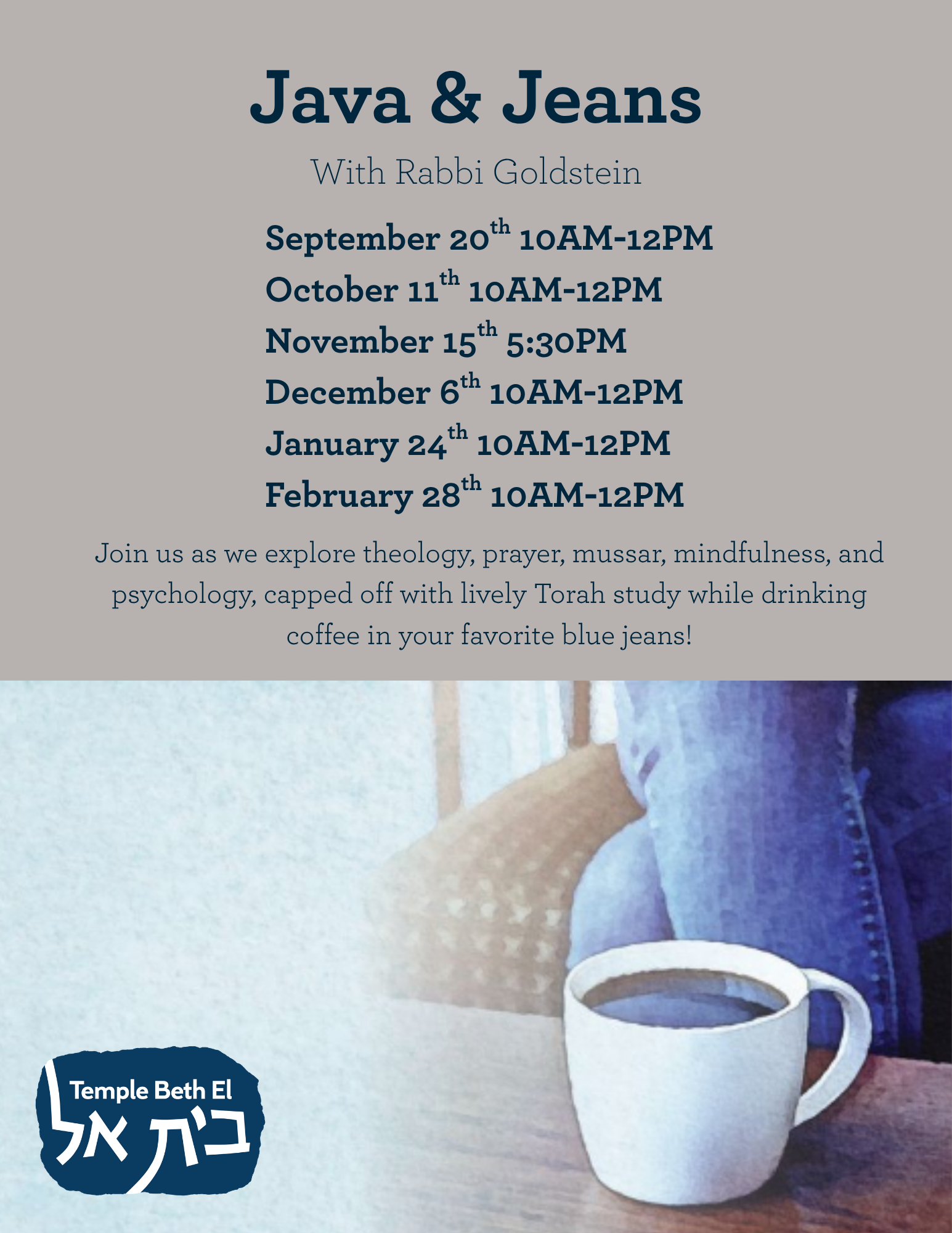 Come learn with Rabbi Goldstein in your favorite pair of jeans while drinking your favorite coffee!