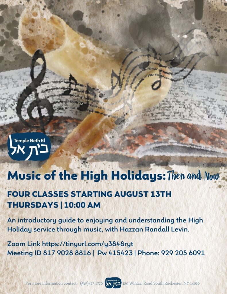 An introductory guide to enjoying and understanding the High Holiday service through music, with Hazzan Randall Levin.