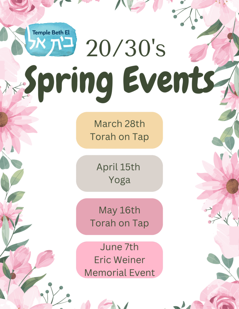 TBE’s 20/30s are a group of folks in their 20s and 30s committed to building a welcoming and vibrant Jewish community within TBE.