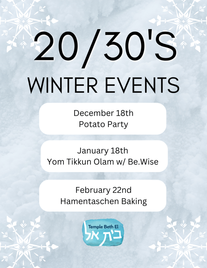 Contact TBE’s 20/30s with any questions, suggestions or just to say hi via email: communications@tberochester.org.