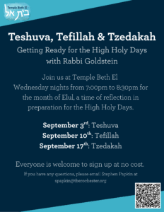 Teshuva, Tzedakah & Tefillah Getting Ready for the High Holy Days with Rabbi Goldstein (1)